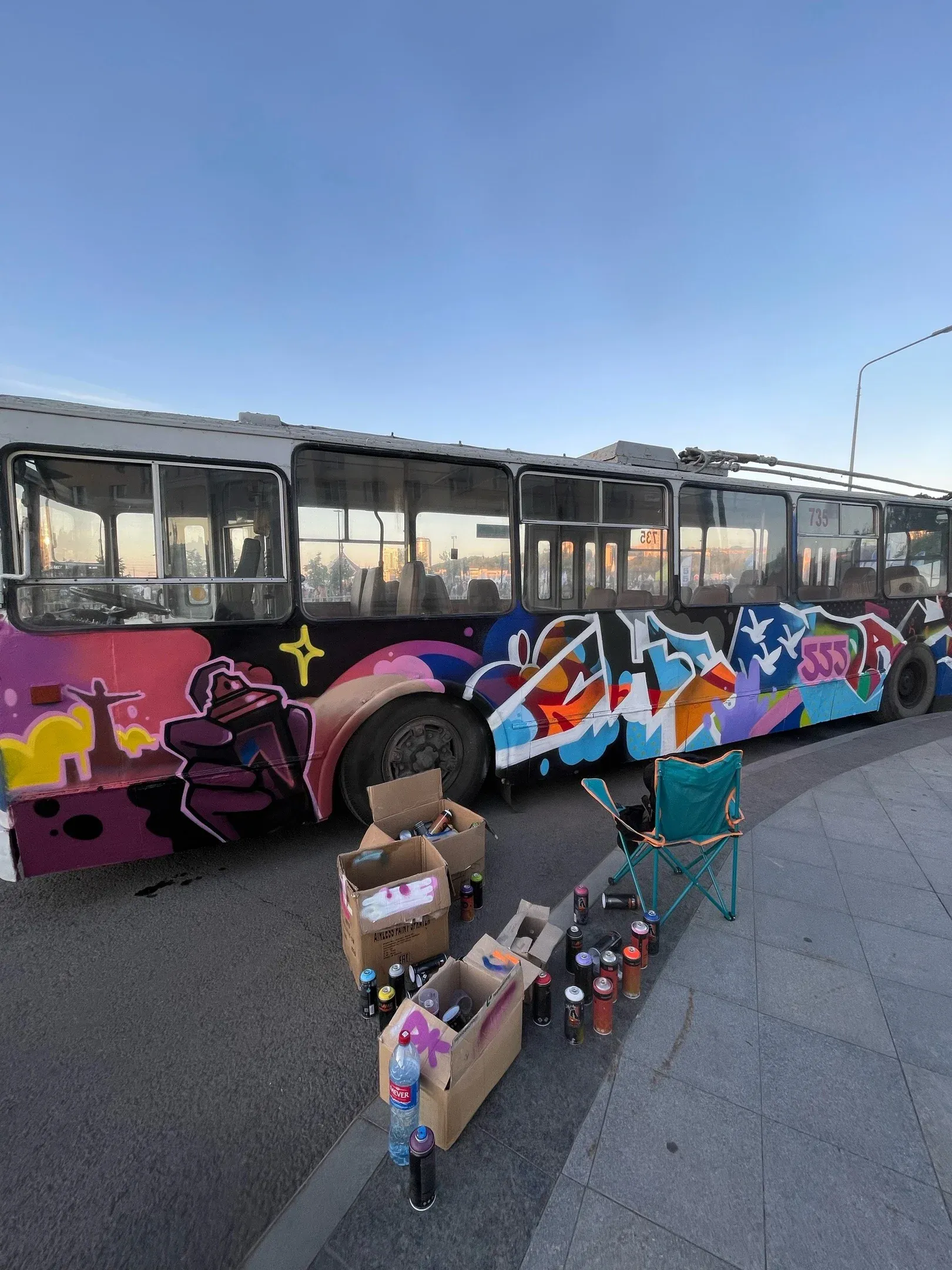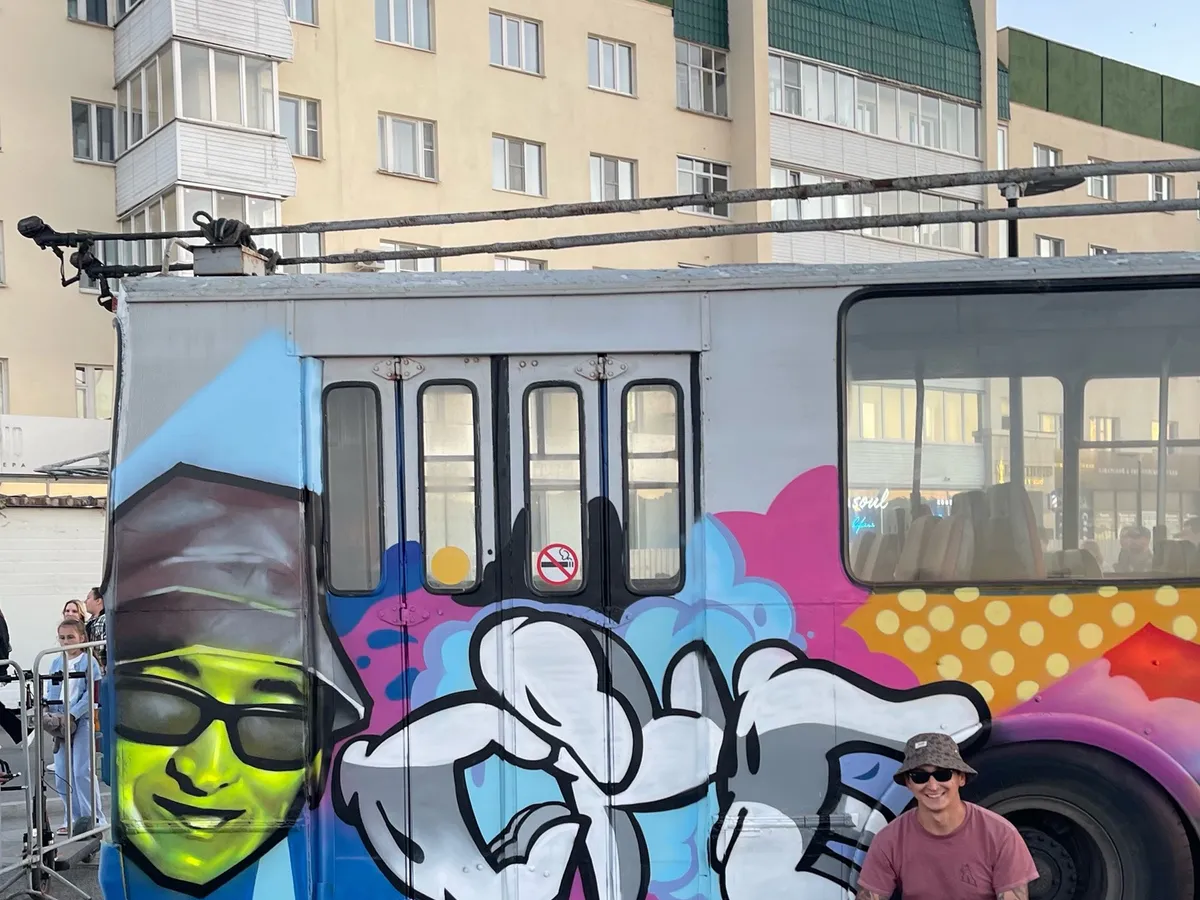 Этим летом молодой человек разрисовал троллейбус, который радует горожан.