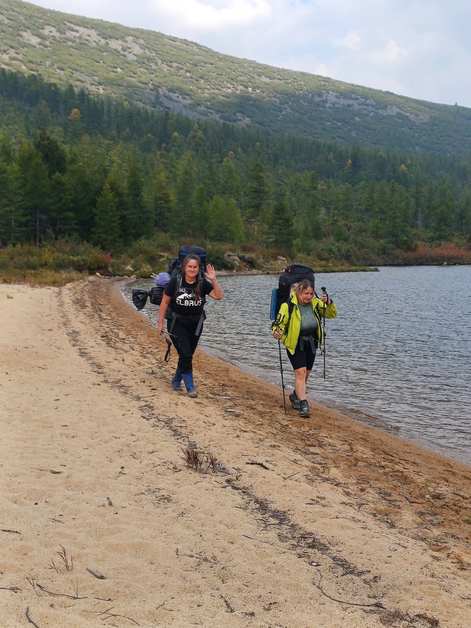 "Это один из лучших походов - что в плане локаций, что в плане эстетики, эмоций, событий и людей, которые были со мной в местах, где нет понятия дорог, а сплошь одни направления! Моя новая подруга Оля спасла меня, отдав свои сапоги после того, как в первый активный день тура у меня отклеилась подошва в треккингботах", - делится женщина.