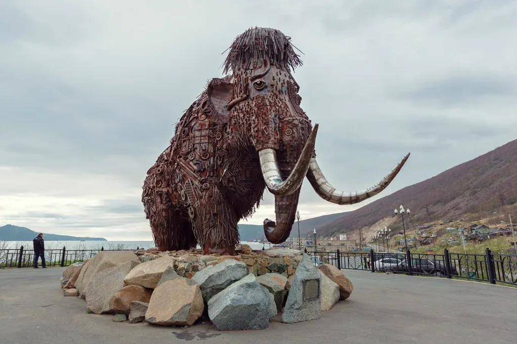 Надежда рассказала про скульптуру "Время" (Мамонт), которую увидела в Магаданской области. Под воздействием морского воздуха поверхность мамонта приобрела ржавый оттенок. Основная идея автора заключается в том, что время идет, люди и животные стареют, все в первозданном состоянии находиться не может.