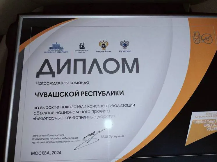 Чувашия была удостоена награды в рамках национальной программы «Безопасные качественные дороги». Республика получила диплом за отличные результаты в реализации дорожных проектов.