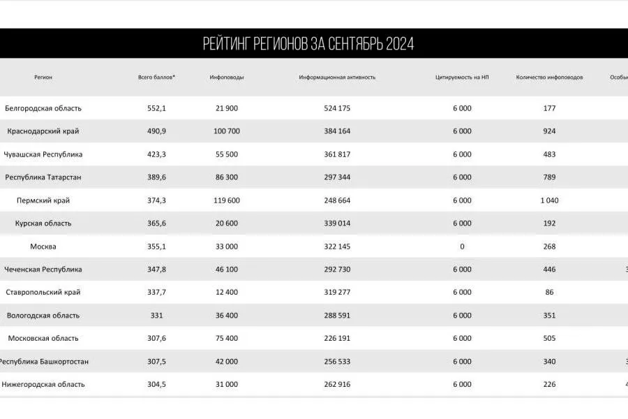 Чувашия уверенно удерживает передовые позиции в сфере информирования о нацпроектах. По данным за сентябрь 2024 года, республика вошла в число трёх лучших регионов России по освещению в СМИ национальных проектов и стратегических инициатив, уступив лишь Белгородской области и Краснодарскому краю. В Приволжском федеральном округе Чувашия занимает первую строчку. Для сравнения, в августе республика находилась в топ-10, но теперь поднялась до первых трёх мест.
