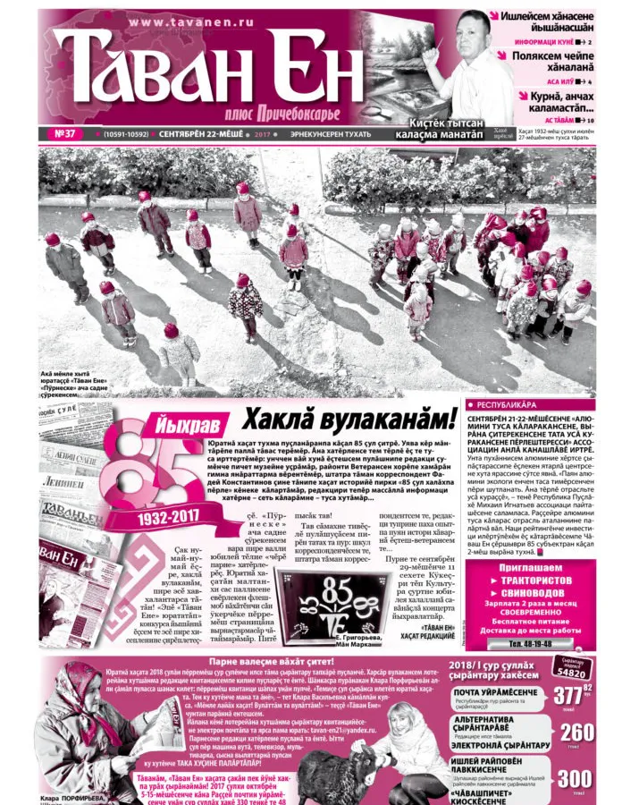 Газета «Таван Ен» продолжит выходить в свет в Чебоксарском районе, освещая важные для местного населения темы и проблемы. Параллельно с этой реорганизацией, планируется создание единой системы доставки печатной продукции.