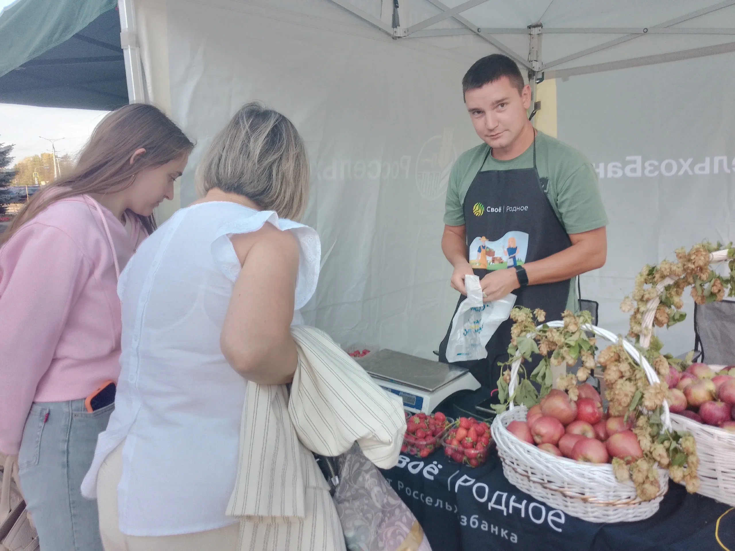 Яблоки, клубнику и рассаду привезли из села Синьялы Чебоксарского округа. Пол килограмма клубники здесь стоили 300 рублей, цена килограмма яблок - 150 рублей. Продавец Андрей поделился, что товар брали хорошо.