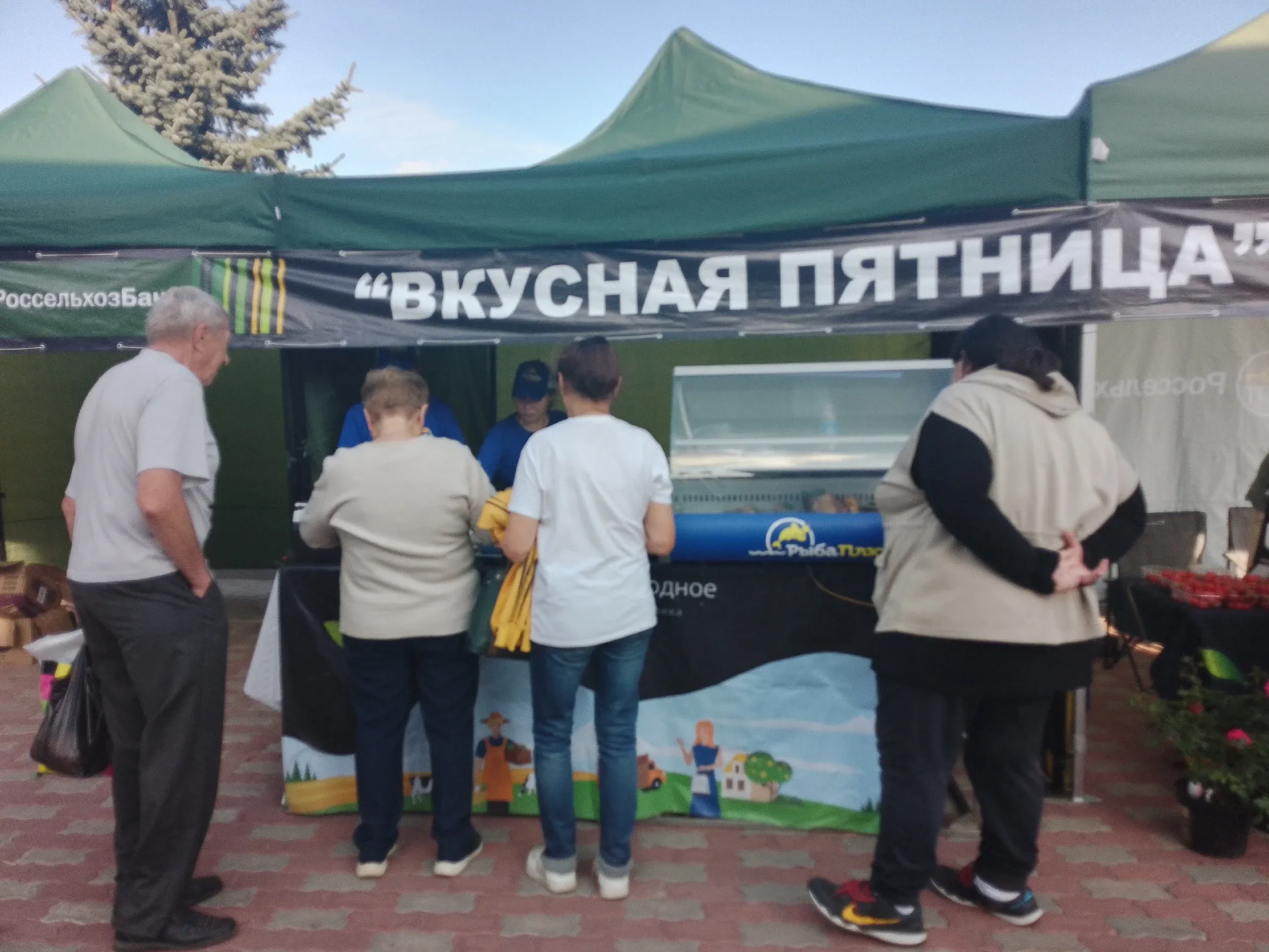 По соседству шла торговля рыбой. Цена варьировалась в зависимости от вида. К палатке с рыбой выстроилась очередь, некоторые покупатели возвращались за рыбой снова.