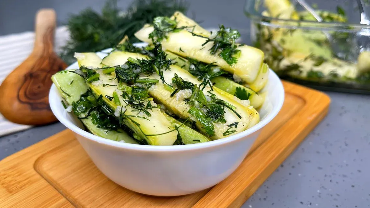 Тонко нарезанные молодые кабачки можно превратить в острую закуску всего за два часа. Секрет в особом маринаде из лимонного сока, чеснока, зелени и специй. Такой вариант идеально подойдет для летних пикников и станет отличным дополнением к шашлыку. Главное преимущество — закуска хранится в холодильнике до недели, не теряя вкусовых качеств.
