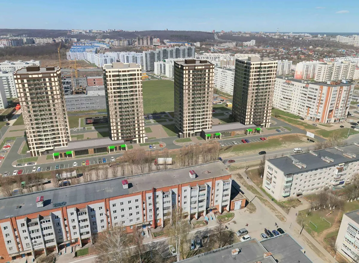 Отметим, что в утвержденном градсоветом проекте значится возведение четырёх 18-этажных башен рядом со школой. Планируется 564 квартиры и 308 парковочных мест: 172 на территории комплекса (наземные и двухуровневый подземный паркинг) и 136 на прилегающей территории. Дома будут монолитно-каркасными с автономным отоплением. Жилой фонд каждой башни включает 1 студию, 70 однокомнатных, 53 двухкомнатных и 17 трёхкомнатных квартир.