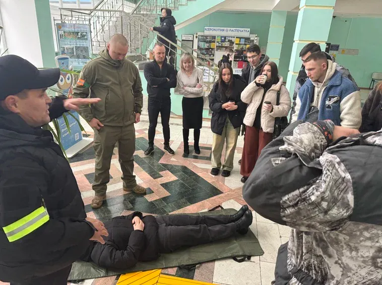 Студенты были разделены на группы, чтобы на практике применить усвоенные знания, находя спрятанные предметы. В классе им также объяснили, как правильно эвакуировать пострадавших и какое оборудование необходимо волонтерам.