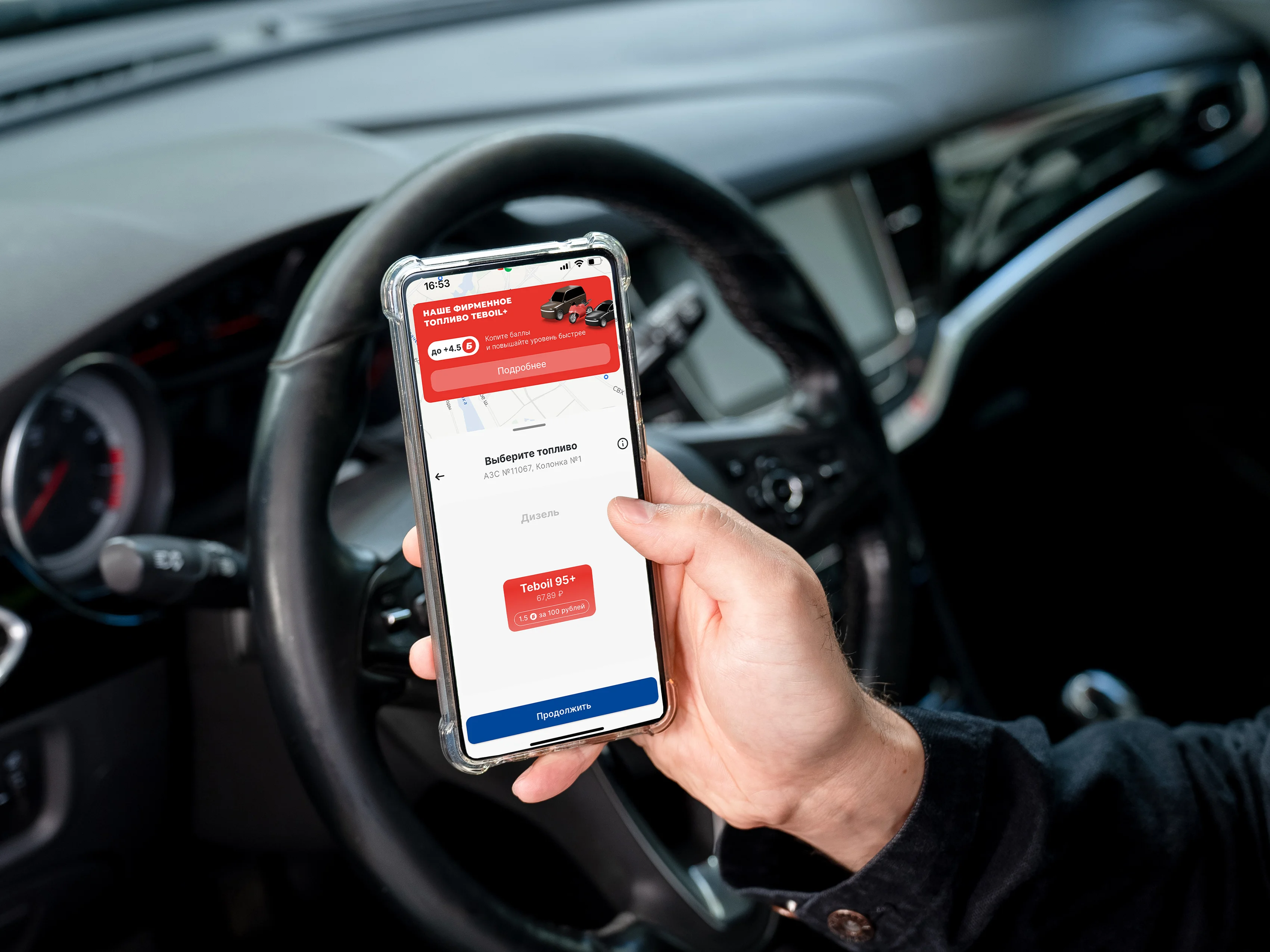 Благодаря интуитивно понятному интерфейсу процесс занимает всего несколько кликов на экране смартфона в мобильном приложении Teboil. После этого водитель может воспользоваться всеми привычными сервисами на АЗС: выпить ароматный кофе, перекусить в кафе, немного отдохнуть перед дорогой или приобрести необходимые товары для себя или автомобиля, включая оригинальные моторные масла Teboil, предварительно припарковав свой автомобиль в специально отведенной зоне на АЗС.