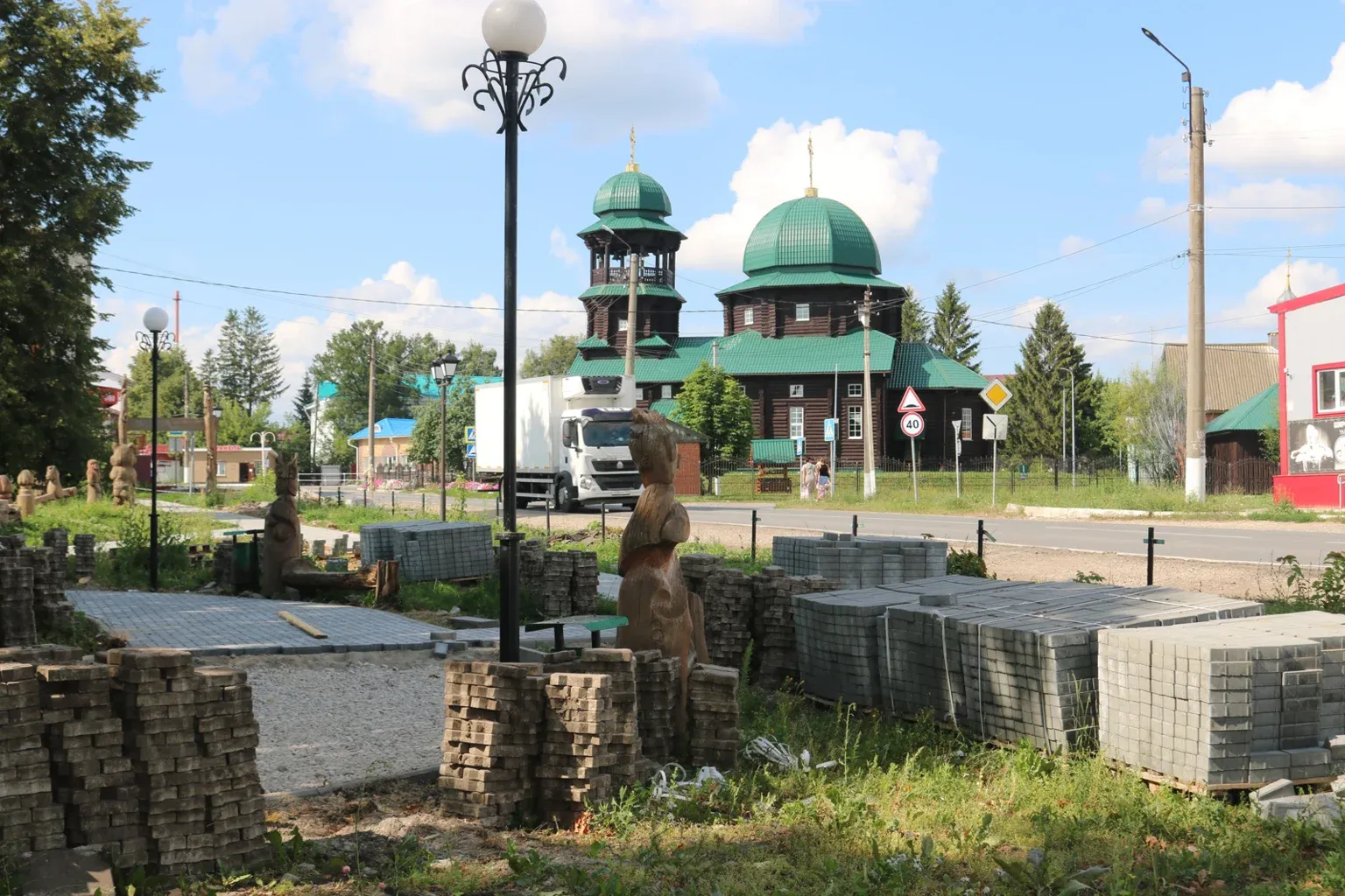 В селе Моргауши завершено обустройство центральной площади – уложена брусчатка, установлены современные светильники, скамейки и декоративные конструкции с качелями.