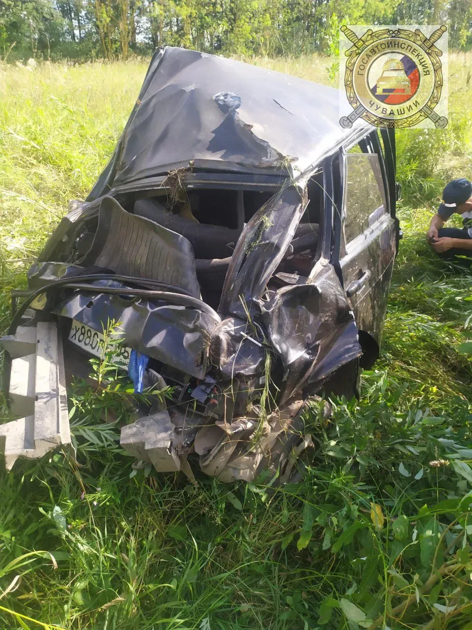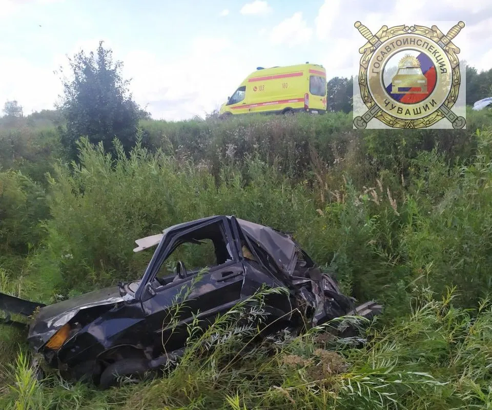 В Чувашии легковушка улетела в кювет и опрокинулась