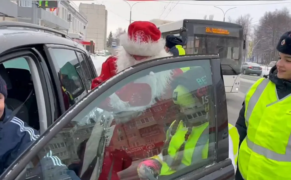 В Чувашии "Полицейский Дед Мороз" поздравил водителей с наступающим Новым годом