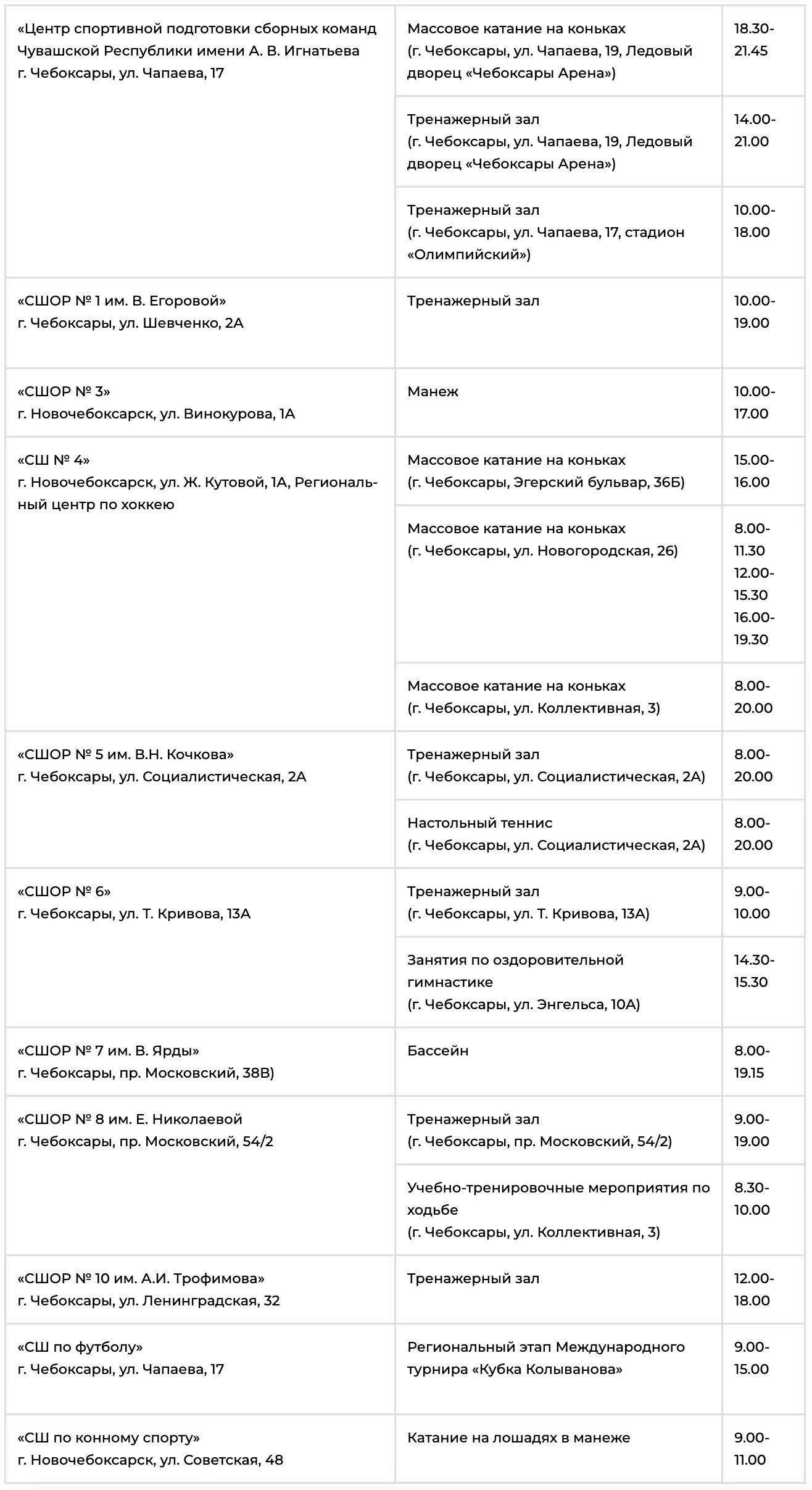 Более подробную информацию о предстоящих мероприятиях в рамках Дня здоровья и спорта, а также возможность записаться на них, можно найти на сайтах спортивных школ и физкультурно-оздоровительных комплексов.