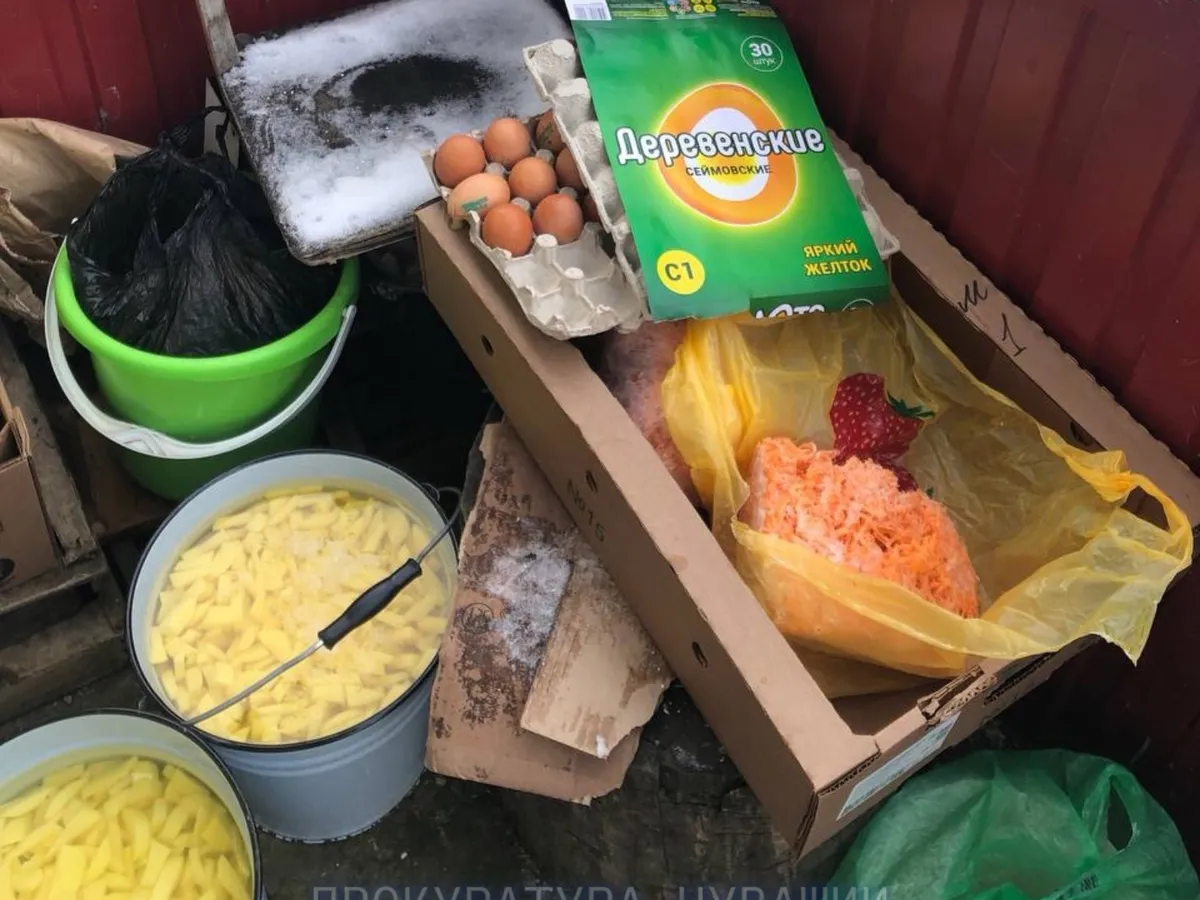 Проверяющие установили, что продукты для школьной столовой находились на улице у запасного выхода. Среди найденного были замороженные котлеты, очищенный лук и картофель, шинкованная морковь, а также яйца, которые предназначались для школьных обедов. Пищевая продукция была расположена рядом с отходами, а на упаковках не было указано, когда еда была произведена и до какого числа она пригодна к употреблению.