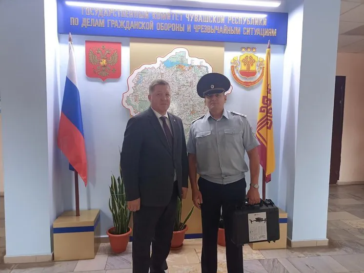 Глава Государственного комитета Чувашской Республики по гражданской обороне и чрезвычайным ситуациям Сергей Павлов передал этот дрон начальнику Чувашского линейного отдела МВД России на транспорте полковнику полиции Артуру Сергееву. Он выразил надежду на поддержку безопасности жителей Чувашской Республики.