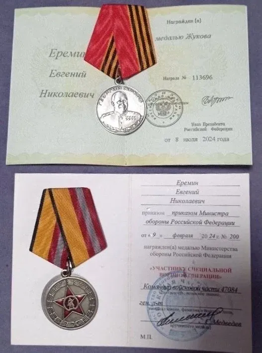 Евгений Еремин, родом из деревни Ижекей Красночетайского района, получил две награды за проявленные мужество и стойкость при выполнении своих обязанностей. Бывший ученик Красночетайской средней школы был награжден медалью Жукова и медалью "Участнику специальной военной операции".